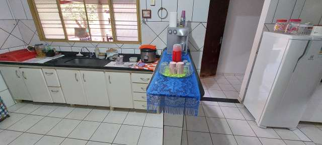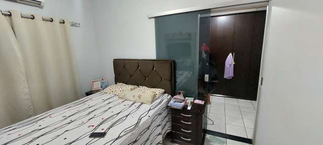 03 quartos, sendo 1 suíte, banheiro social, copa,cozinha,2 salas,garagem para vários carros,forro gesso